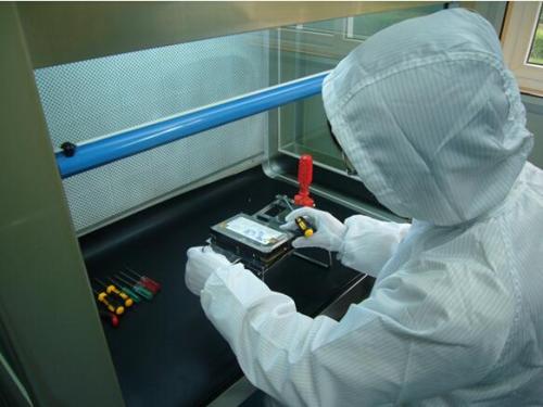对于盘体出现故障的硬盘,必须在百级超净环境下进行开盘处理,我们采用的方法是用同型号硬盘作为配件盘进行替换,然后再用专用设备进行磁头定位等操作,若故障盘与配件盘是同批次的话,成功率会大大提高的。