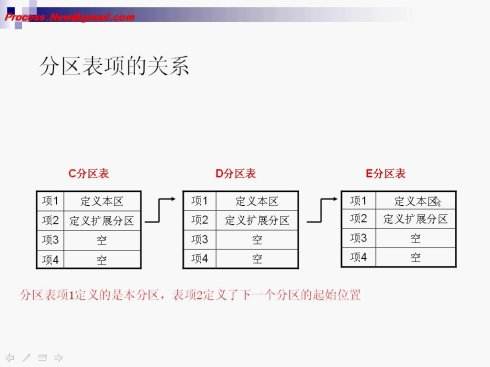 •分区表(DPT,Disk Partition Table)含4个分区项,偏移地址01BEH--01FDH,每个分区表项长16个字节,共64字节为分区项1、分区项2、分区项3、分区项4。