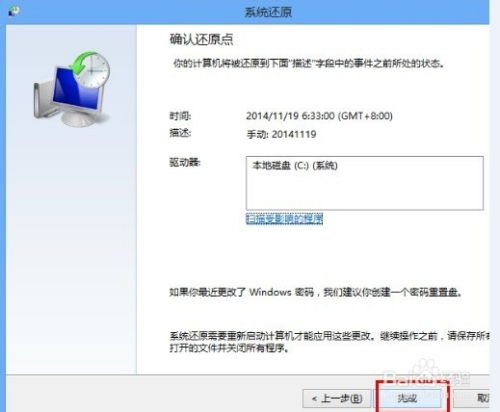 按照提示完成系统恢复。