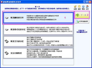 2. 选择恢复模式:打开软件后,选择合适的恢复模式。比如,如果你想恢复误删的文件,可以选择“误删文件恢复”模式。
