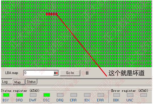 2. 在PC3000环境下扫描重要扇区段,观察坏道的数量与分布情况。