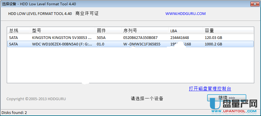 HDD Low Level Format Tool即硬盘低格工具,它可以在WIDNOWS平台上直接低格你的硬盘而不需要进入DOS环境下使 用。硬盘低格需要一定的时间且会彻底抹除硬盘上的所有数据,所有数据将被完全和不可逆转地擦除!请谨慎操作以免造成不可挽回的损失。机器码完整低级格式 化,也可执行快速擦除,只删除分区和MBR分区表。