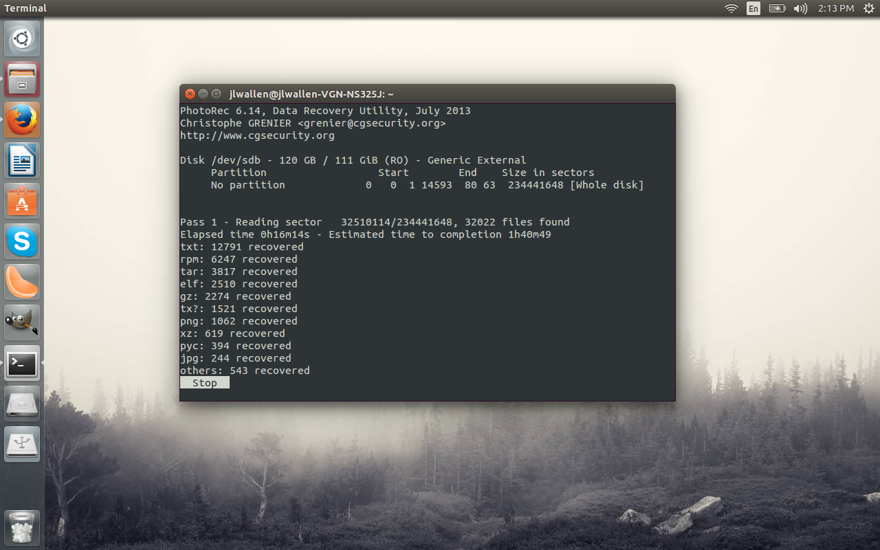 如果你想恢复丢失的文件,照片,视频等photorec是你想要的。这个工具是Testdisk的一部分,所以一旦你安装了Testdisk,Photorec就可以投入使用了。这个特定的工具完全忽略了文件系统,直接查看底层数据。这意味着,如果您的文件系统被损坏,数据仍然有可能被恢复。
